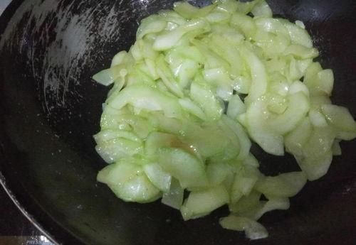 5. 加入角瓜条,快速翻炒均匀。